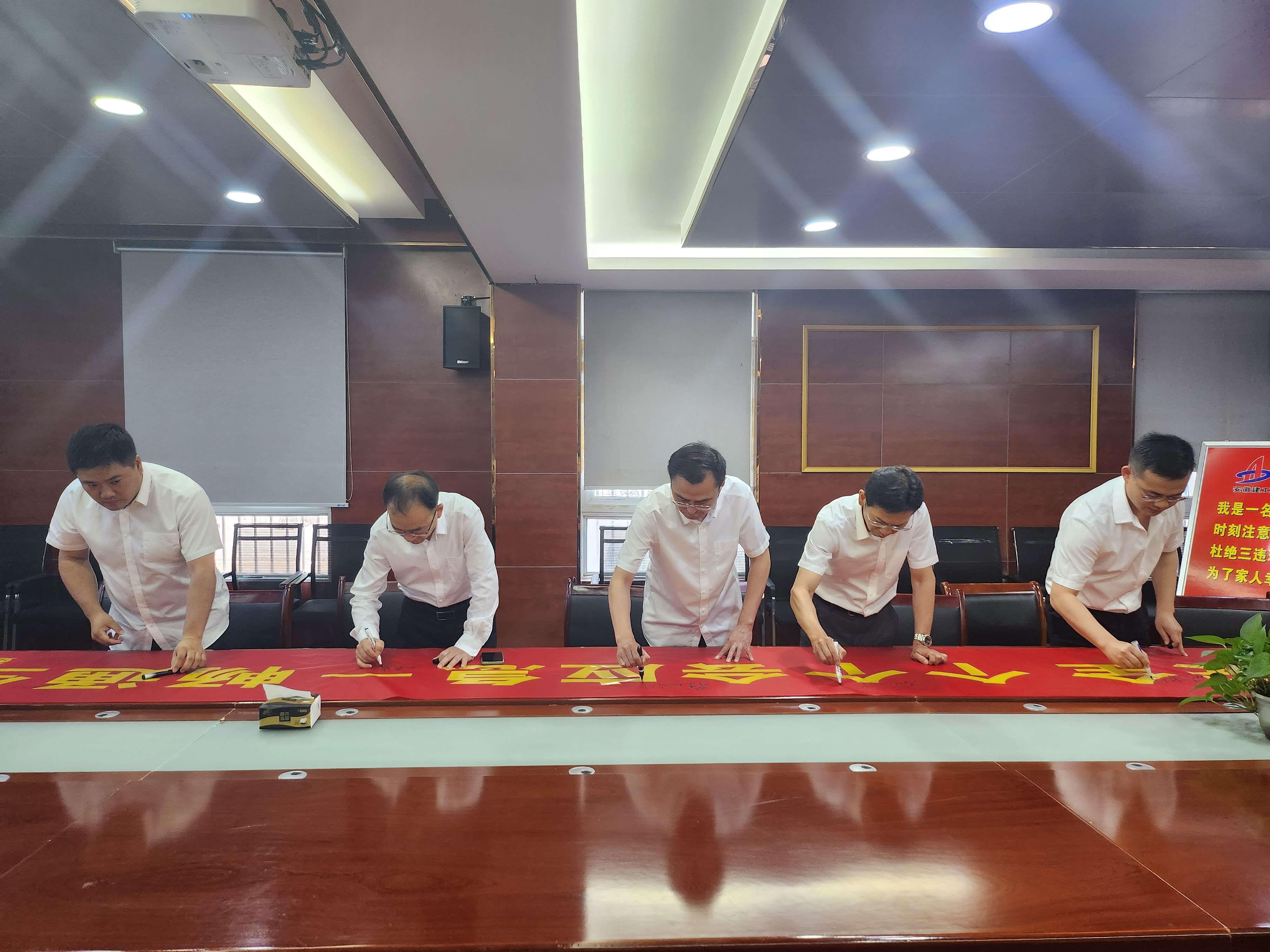 “我是一名安全建工人,我鄭重宣誓:時刻注意安全,遵守安全法規;履行安全職責,提高安全技能;杜絕三違現象,保證四不傷害;強化紅線意識,促進安全發展;為了家人幸福、企業發展,誓做建工安全人!”伴隨著一陣陣響亮的宣誓聲,聯合簽名、觀看安全生產月主題宣傳片及公益廣告等,第一分公司2024年“安全生產月”正式拉開帷幕。