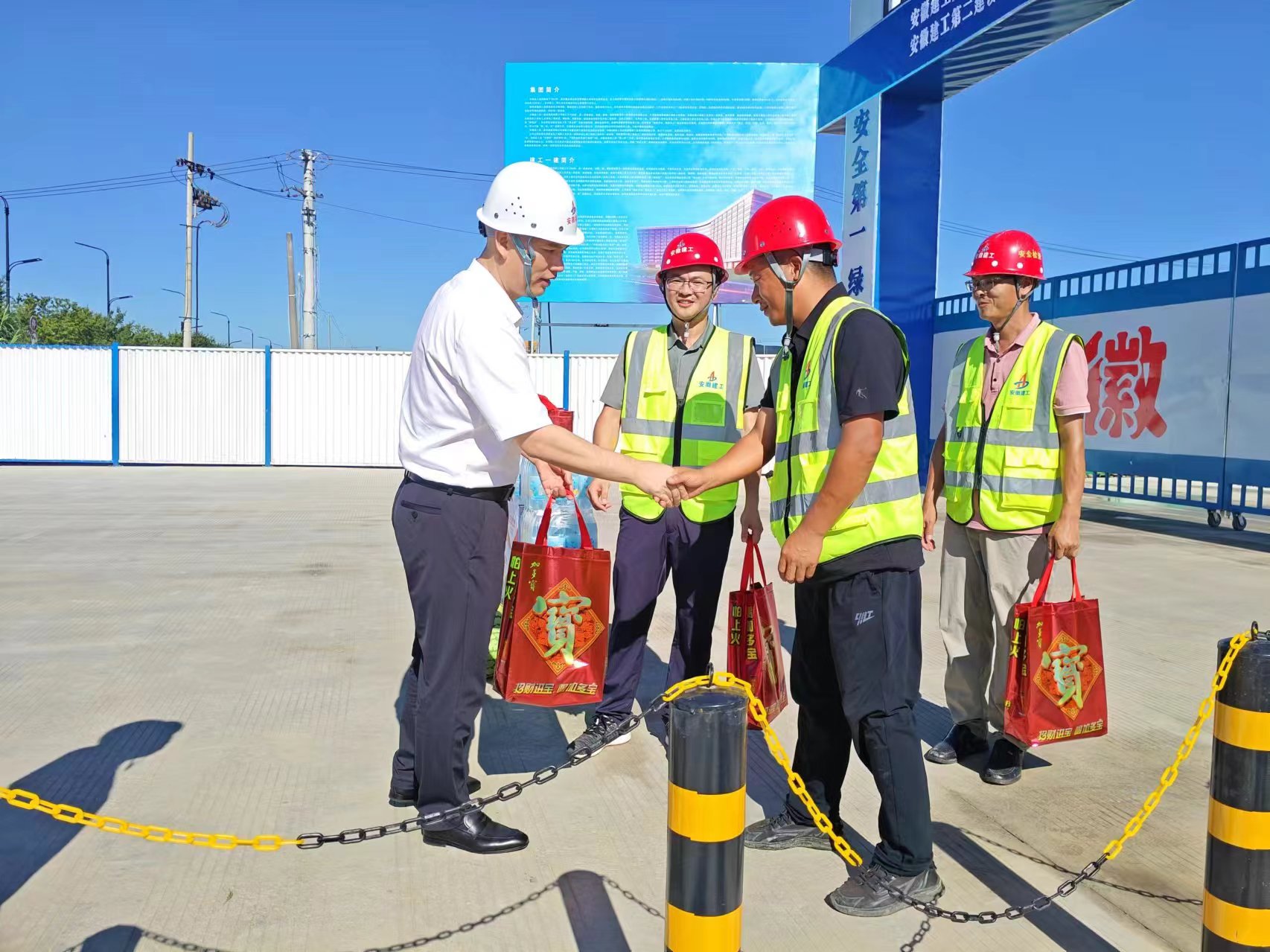 2024年7月30日,建工股份副總經(jīng)理,建工二建黨委書(shū)記、董事長(zhǎng)朱忠明赴安徽建工集團(tuán)智能綠色制造(長(zhǎng)豐)產(chǎn)業(yè)園項(xiàng)目開(kāi)展“工會(huì)送清涼 防暑保安康”慰問(wèn)活動(dòng)。