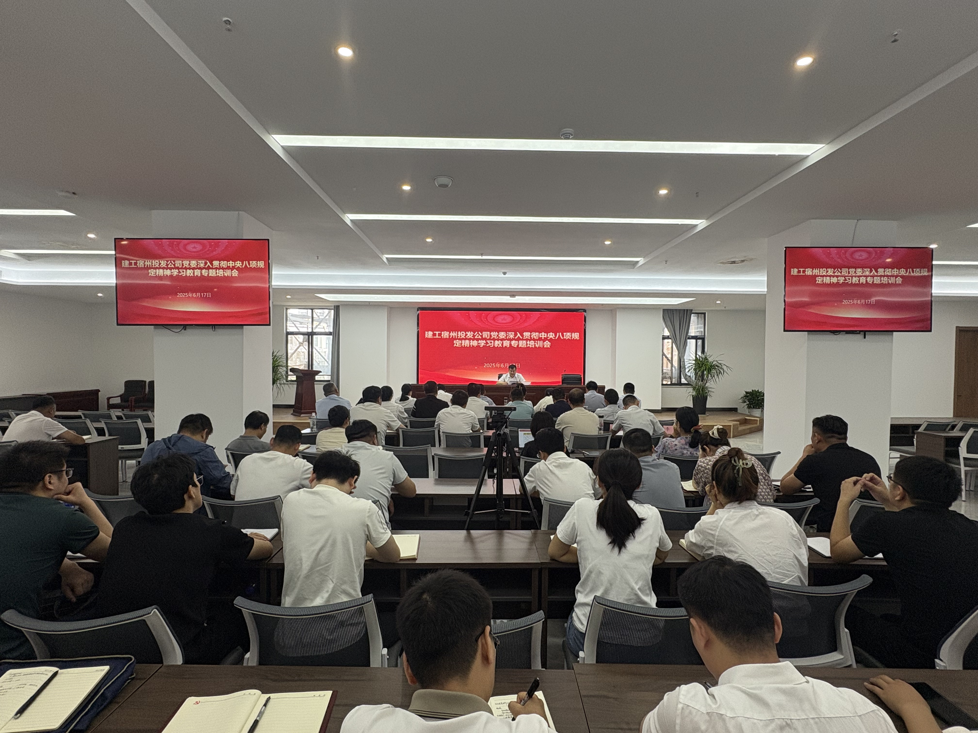 為進一步推進深入貫徹中央八項規定精神學習教育走深走實,6月17日上午,建工宿州投發公司黨委組織開展深入貫徹中央八項規定精神學習教育專題培訓會。公司黨委委員、紀委書記荊帥出席會議并授課。