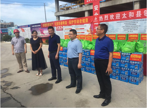 連日來(lái)高溫酷暑,為有效緩解高溫給一線施工人員帶來(lái)的不便,更好地維護(hù)施工現(xiàn)場(chǎng)員工身心健康和人身安全,確保工程進(jìn)度有力推進(jìn),7月19日上午,太和縣縣長(zhǎng)劉牧愚、重點(diǎn)局局長(zhǎng)苗玉勇一行頂著烈日來(lái)到安徽二建太和發(fā)藝時(shí)尚文化中心施工現(xiàn)場(chǎng)開(kāi)展“送清涼”活動(dòng),給奮戰(zhàn)在一線的廣大員工送去了絲絲涼意和誠(chéng)摯的關(guān)懷。